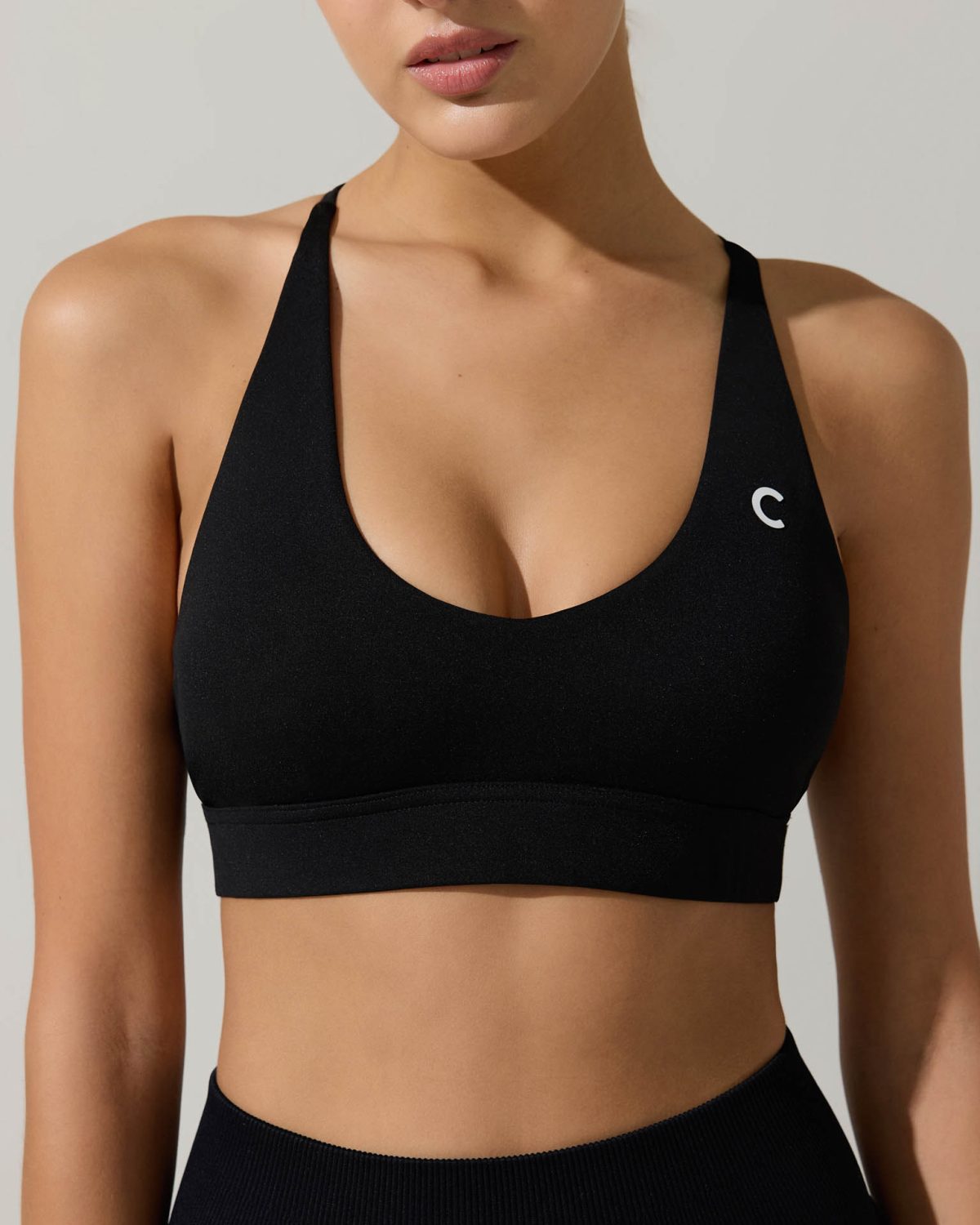 - Espalda descubierta con tiras sutiles cruzadas con elástico interno, para mayor sujeción.