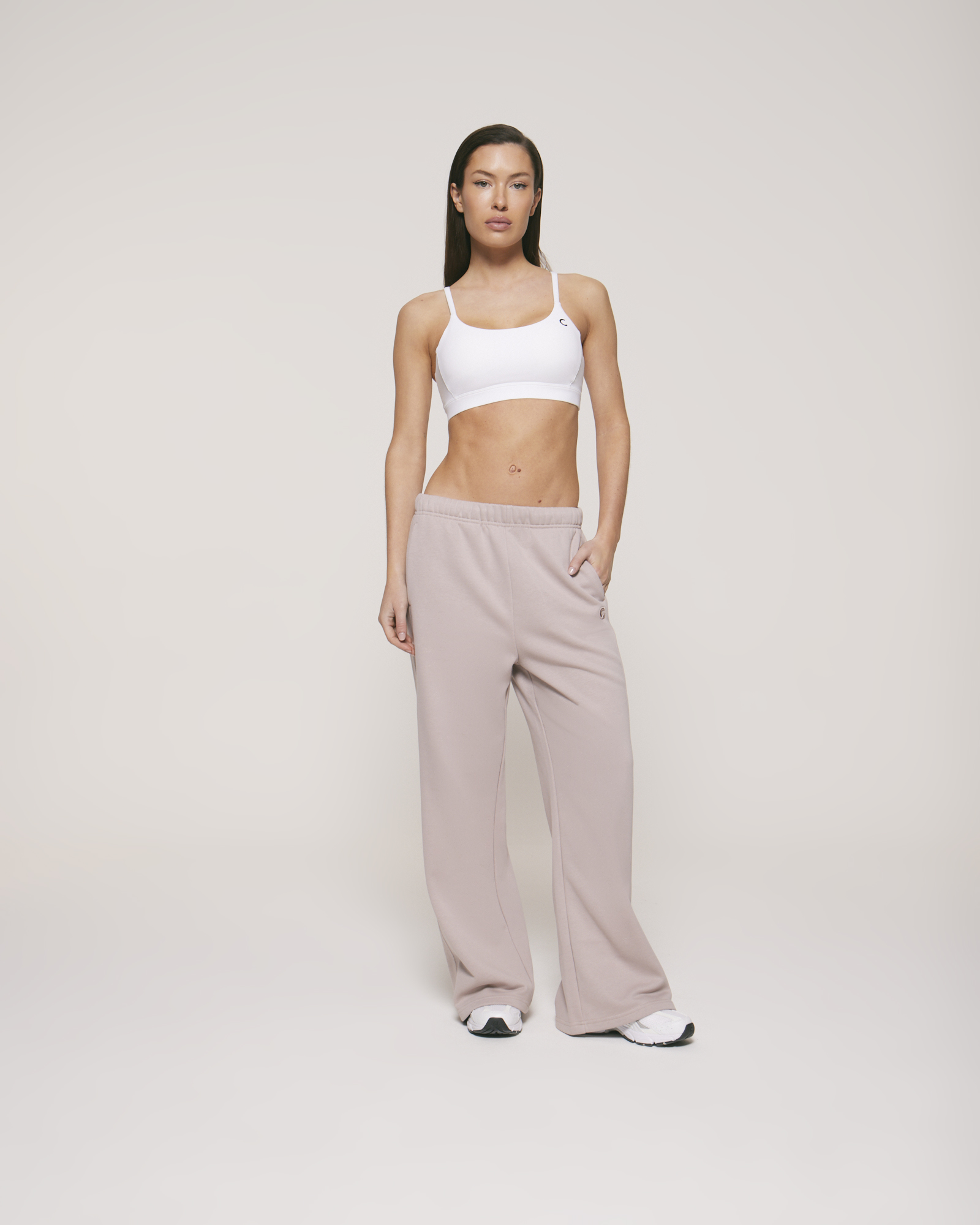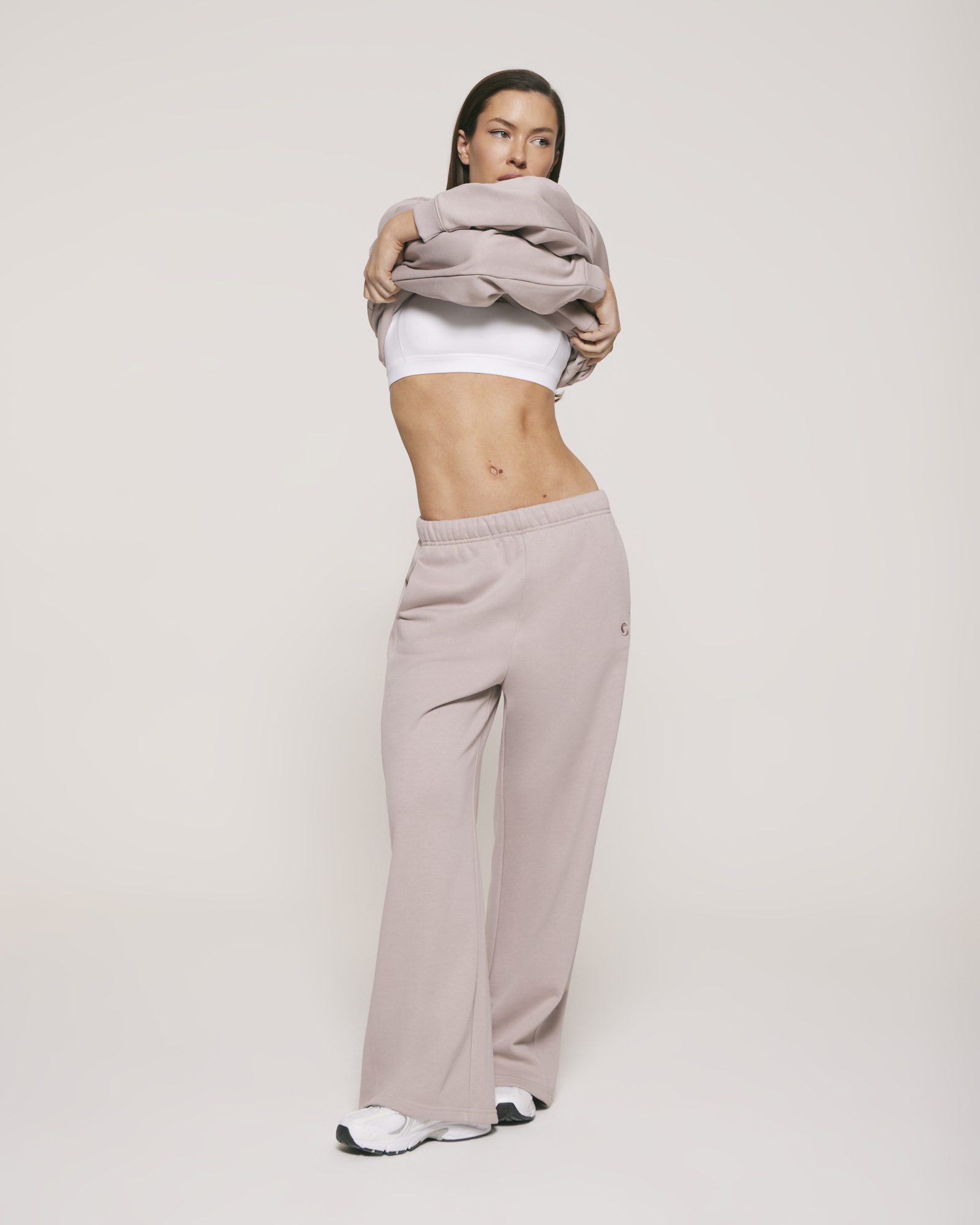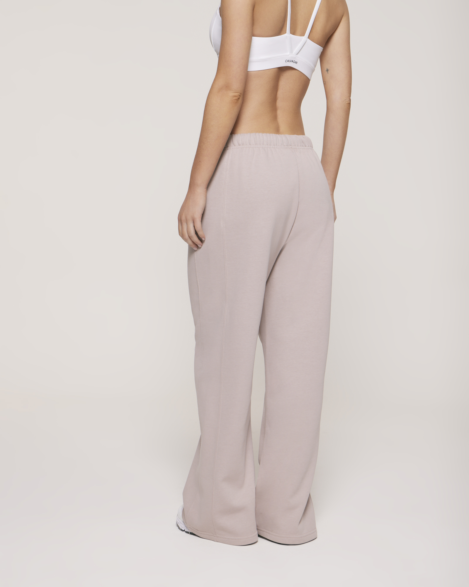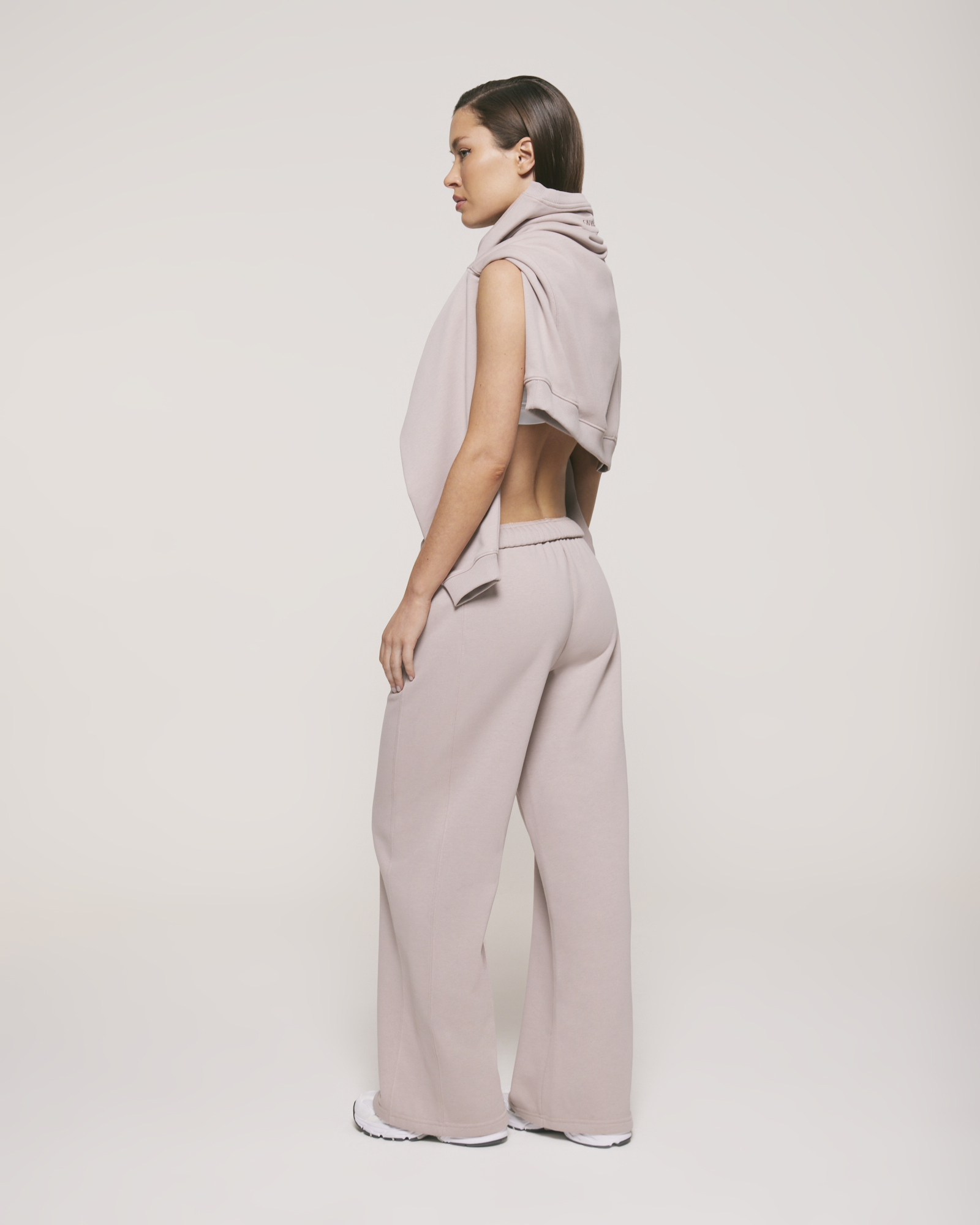 - Su cintura adaptable: puede usarse estirada para un calce más alto y cómodo, o doblada para generar un tiro más bajo, con un ajuste más relajado.