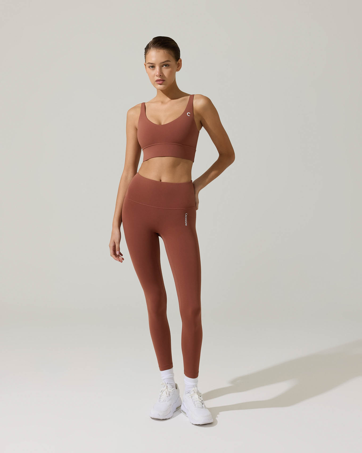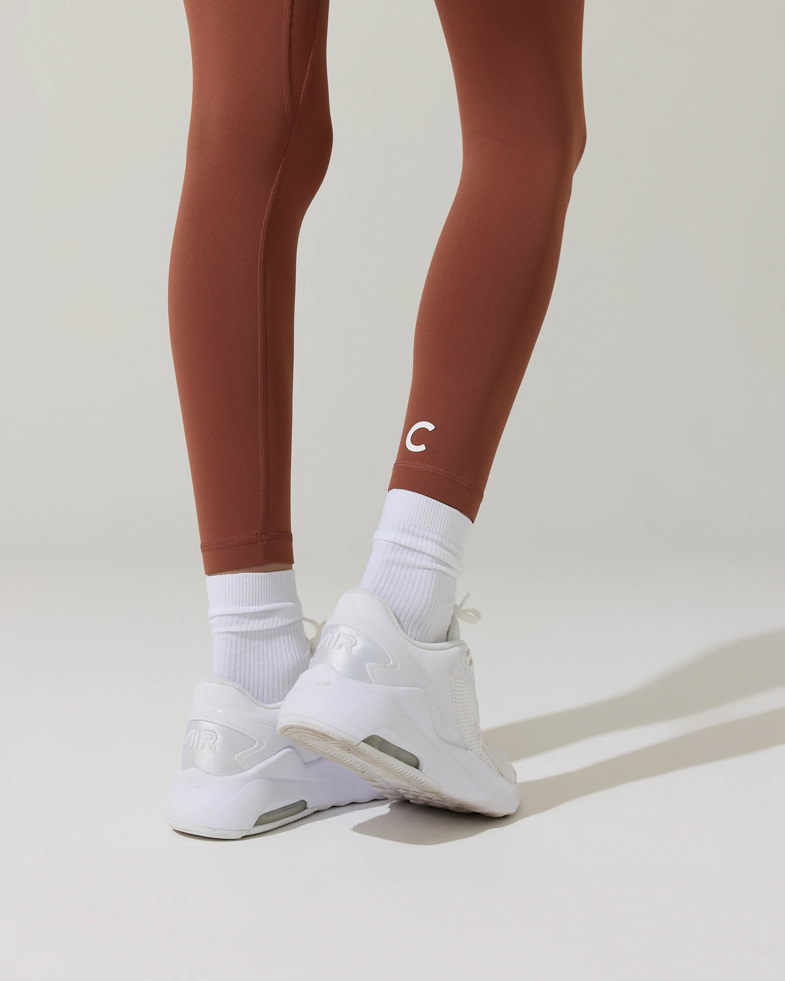 - The waistband, high rise, is made with double-layered fabric and elastic, providing superior support.